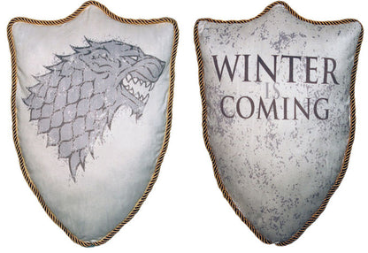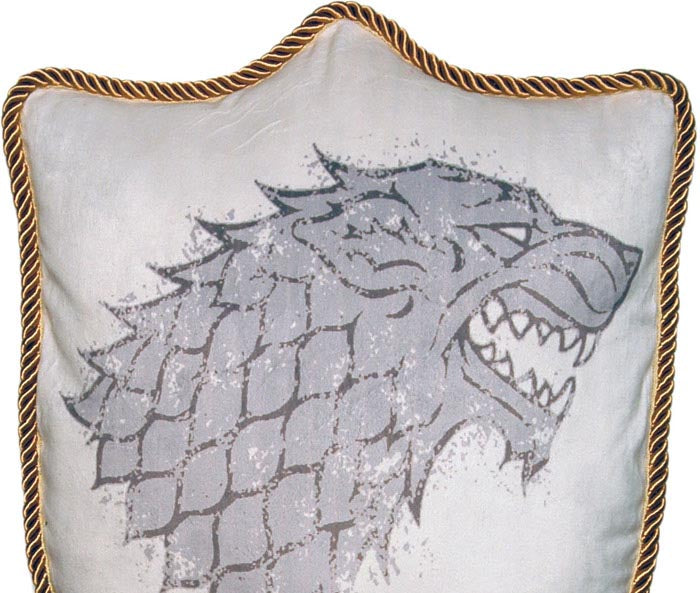 Los cojines con los escudos de Juego de Tronos se presentan con tres opciones: Stark, Lannister y Targaryen. Cada uno de ellos lleva en su cara anterior el emplema de la casa, y en la posterior el lema que las representa. Así, el cojín de los Stark está representado por la cabeza de un lobo huargo y la frase "The winter is coming" (Se acerca el invierno). El de los Lannister lleva el león rampante y en la parte posterior la leyenda "Hear me roar" (Oye mi rugido). Finalmente, el cojín de la casa Targaryen tiene el emblema de los dragones y la frase "Fire and Blood" (Fuego y sangre).