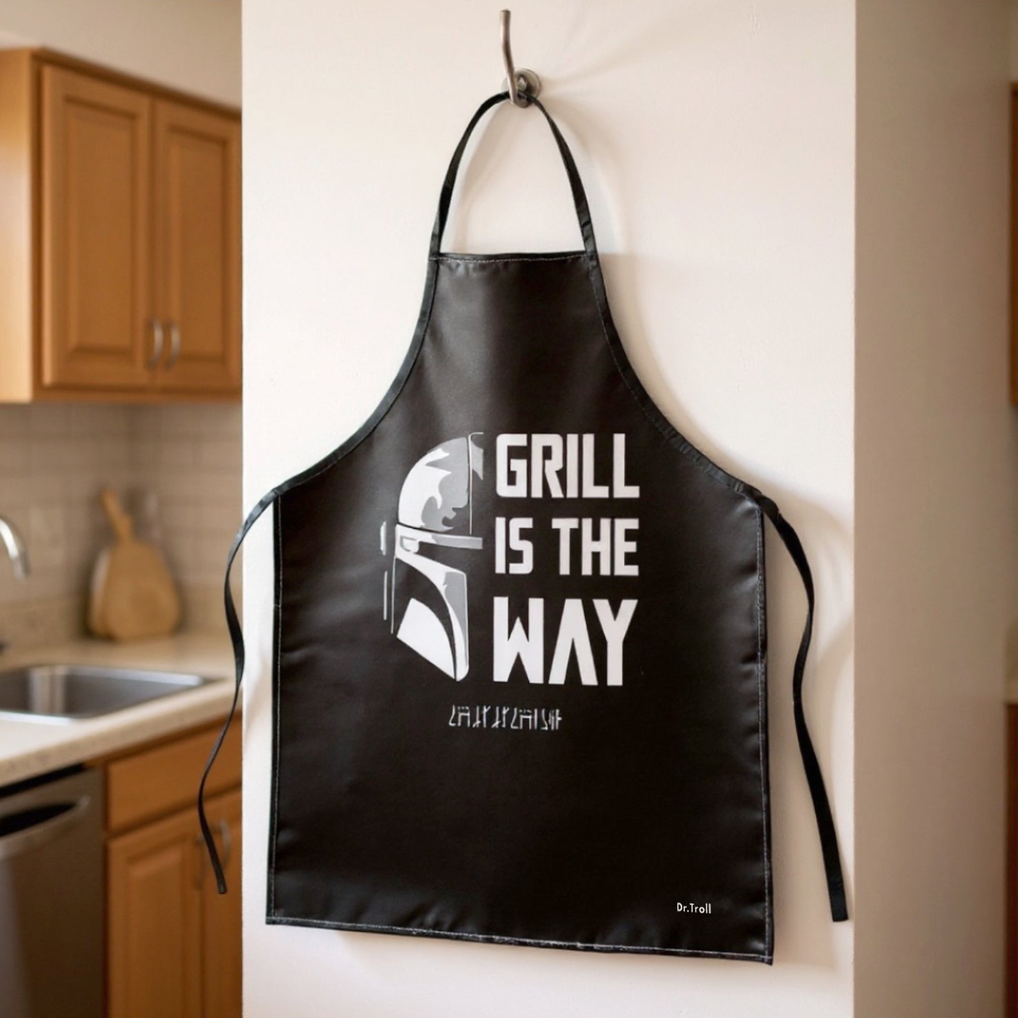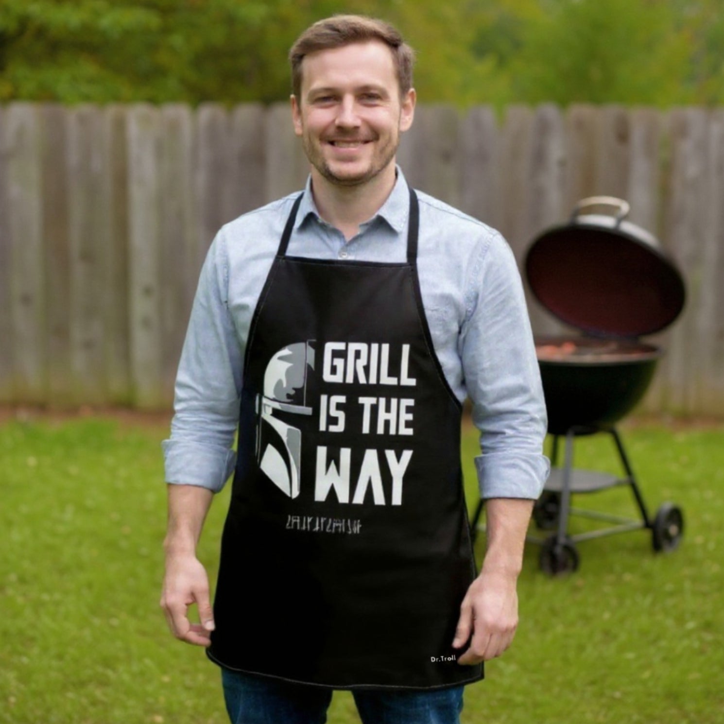 - Delantal barbacoa divertido – Con la frase “Grill Is The Way” y diseño de guerrero espacial, perfecto para amantes de la cocina y la parrilla. Un regalo ideal para fans del mítico Cazarrecompensas galáctico