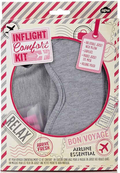 - Contiene: cojín hinchable, tapones para los oídos y antifaz..