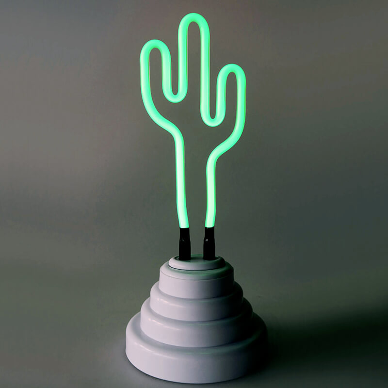 Bonita lámpara de neón con la forma de un precioso cactus y un color verde intenso. Es ideal para decorar un escritorio o colocarlo en una mesita y darle un toque verde vivo a cualquier espacio.