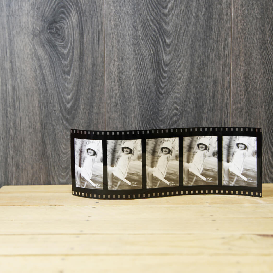 Original marco de fotos ondulado imitando al film de película. Fabricado en plástico rígido.