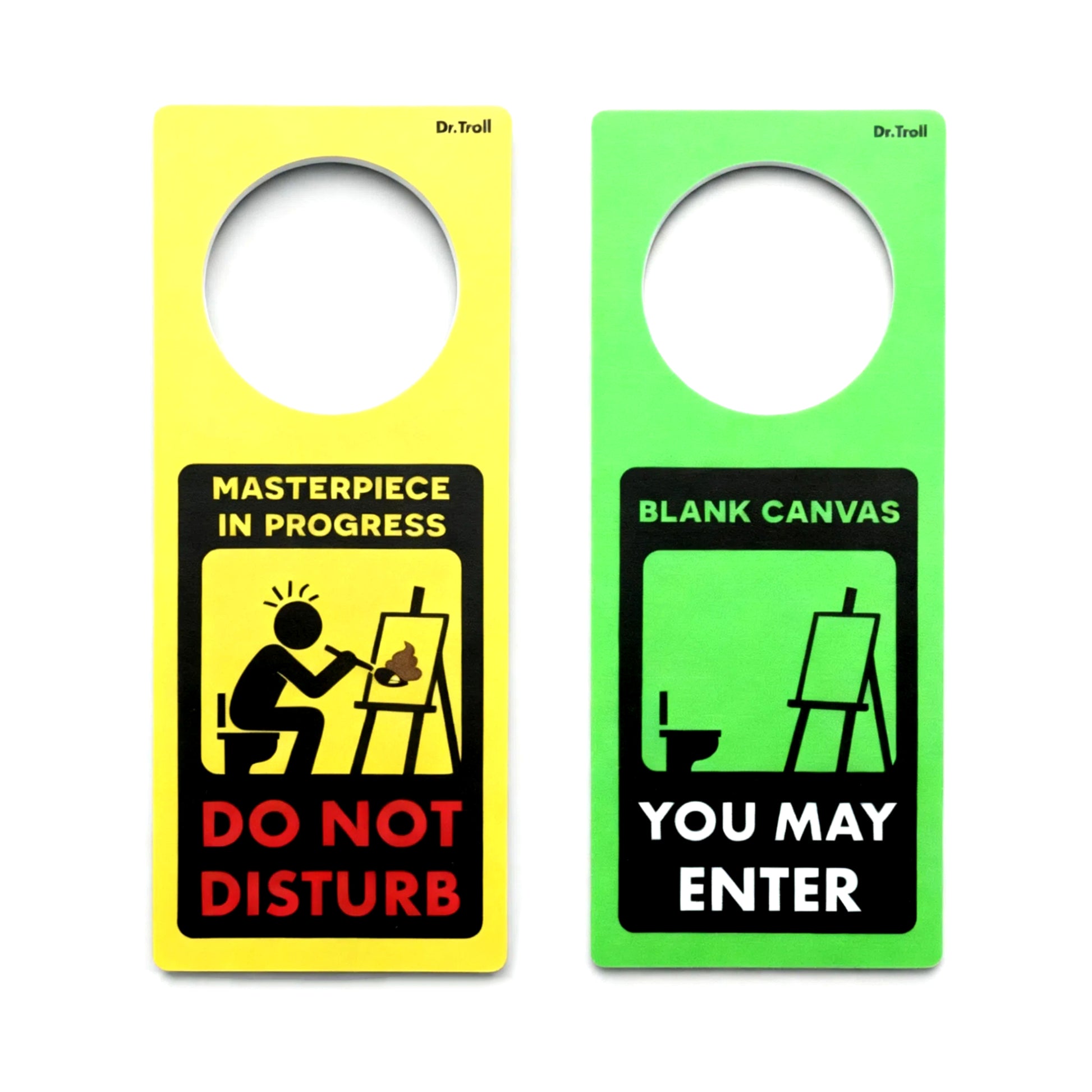 - DISEÑO REVERSIBLE ARTÍSTICO - Dos mensajes diferentes: "Masterpiece in Progress - Do Not Disturb" y "Blank Canvas - You May Enter", perfectos para comunicar tu momento creativo
